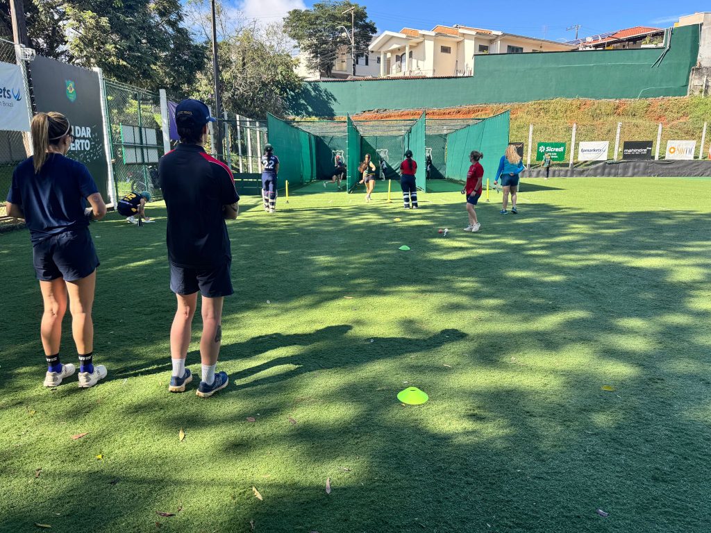 In parallel, Lee, Jo and Thom walked the 2.5 miles to the Cricket Brasil training site, commonly called “CT” to catch up on project admin and experience the senior squad training sessions, the women in the nets, the men undertaking circuits of fielding drills. Jo was able to to ‘turn her arm’ with some success, training alongside and with full inclusion and acceptance of the squad, and all in the first day of sunshine we’d seen since our arrival.