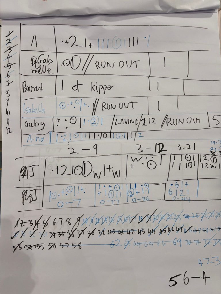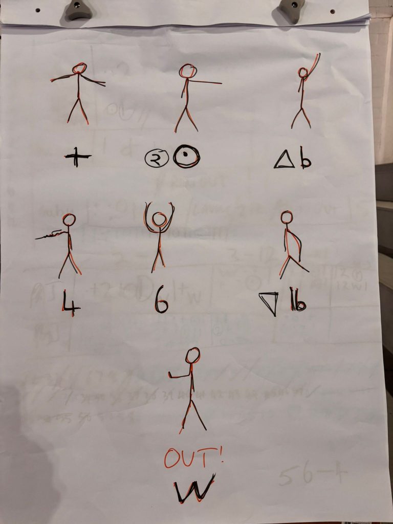 The final hour was a game where all participants umpired and scored two overs each, as well as having a bat, a bowl and helping in the outfield/hall. Of course, given a bat and a ball these excellent players were soon taking wickets, hitting sixes and shouting “Howzat” – although Yolanda’s appeals were still definitely the loudest, even from cover – and the umpires withstood the onslaught, made decisions with authority and ably communicated with the scorers.