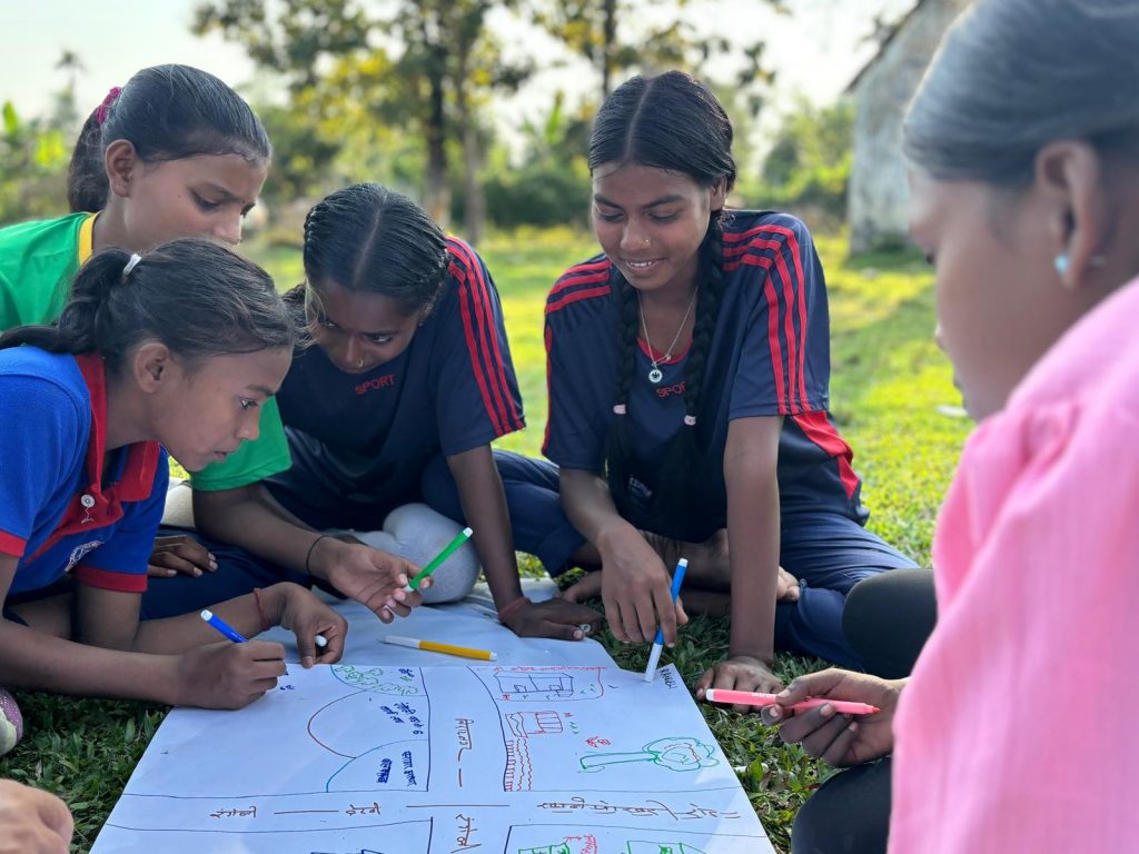 Maps were crowded with colour and detail. Girls pointed out leaders whose voices mattered in their communities, and places where small changes such as more encouragement, a girls’ team, or shared equipment, could unlock opportunity.