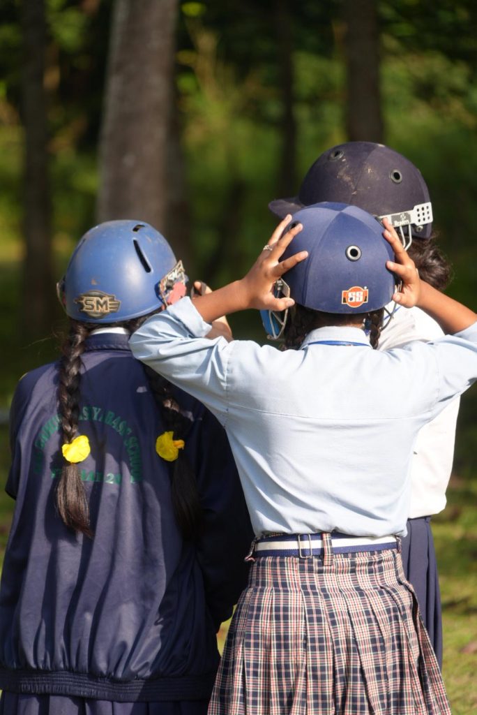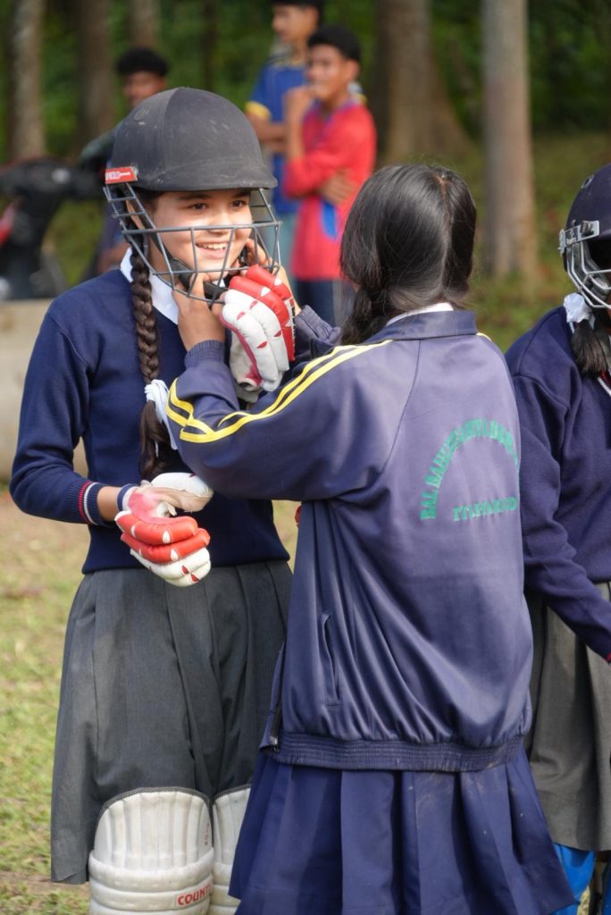Local male cricket players with club kit supported the girls and put up a net for us. The girls looked like they truly loved putting on the pads, gloves & helmets and really didn’t want to take them off or come out of the net. Plenty of smiles! The local coaches despite the heat continued to support the girls and feed / field balls and replace cones.