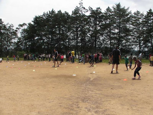 OK – so what about the coaching? We arrived in Gitarama around 9.30 this morning – 30 minutes early for a change! So we had plenty of time to set everything up. Then we were told we were at the wrong place! Fortunately the kids could walk over to us, so we still managed to get going around 10.