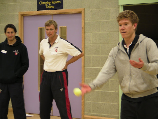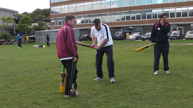 Outside (definitely colder than Africa) for a sample session run by Andy then again into country groups to each run a session on a different batting stroke.