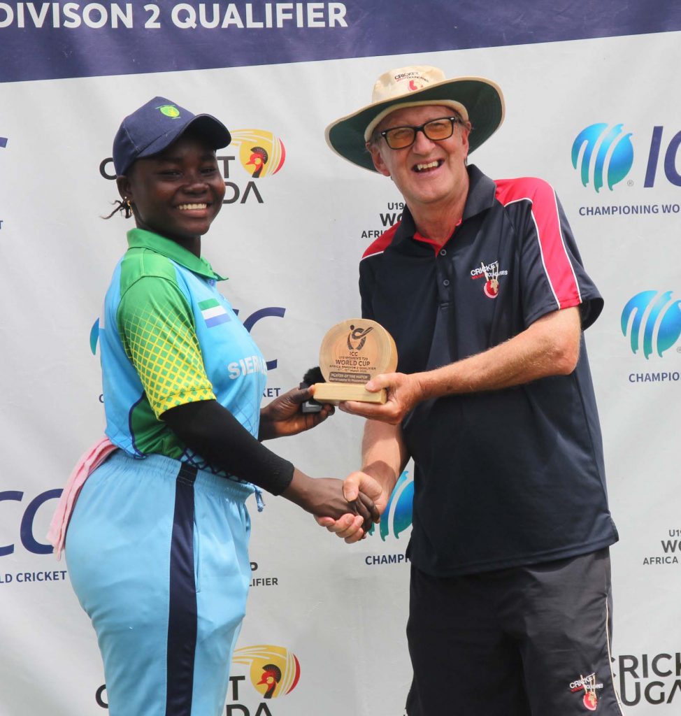 In the event Sierra Leone dismissed Mozambique for just 40 runs and chased these down in only three overs. You can see the highlights and see Mark’s presentation to Terrica Tommy at the end of this video.